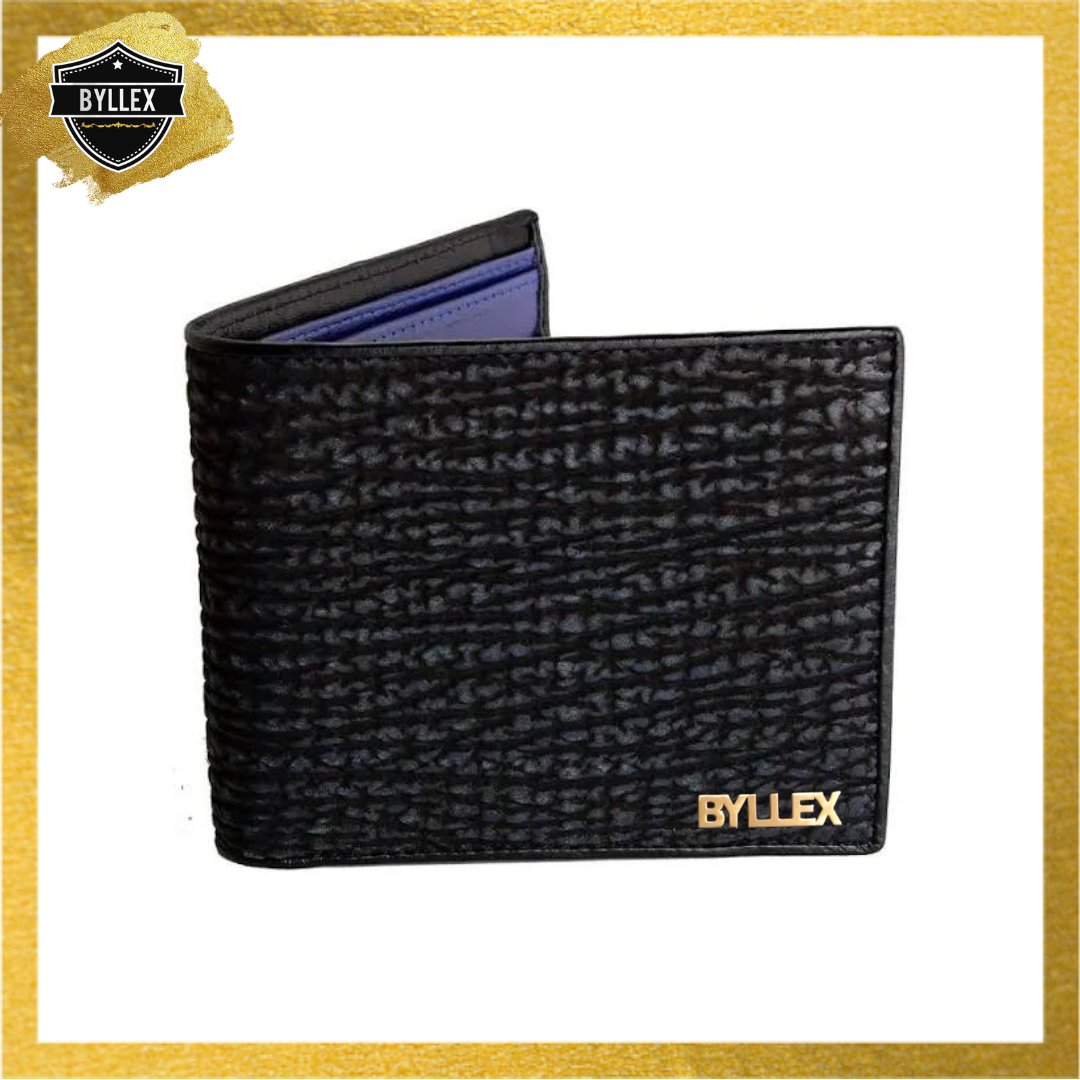 ⚜️BYLLEX , Porte-monnaie model “Shark” en peau de requin et cuir bleu, logo Byllex en Or jaune 18k. Fait main en France 🇫🇷.